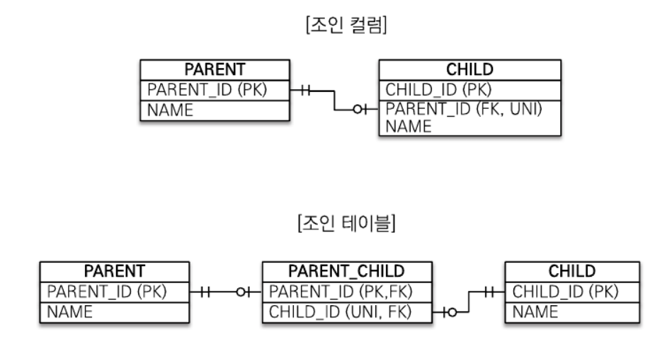 2. 조인 테이블 사용 (테이블 사용)1. 조인 컬럼 사용