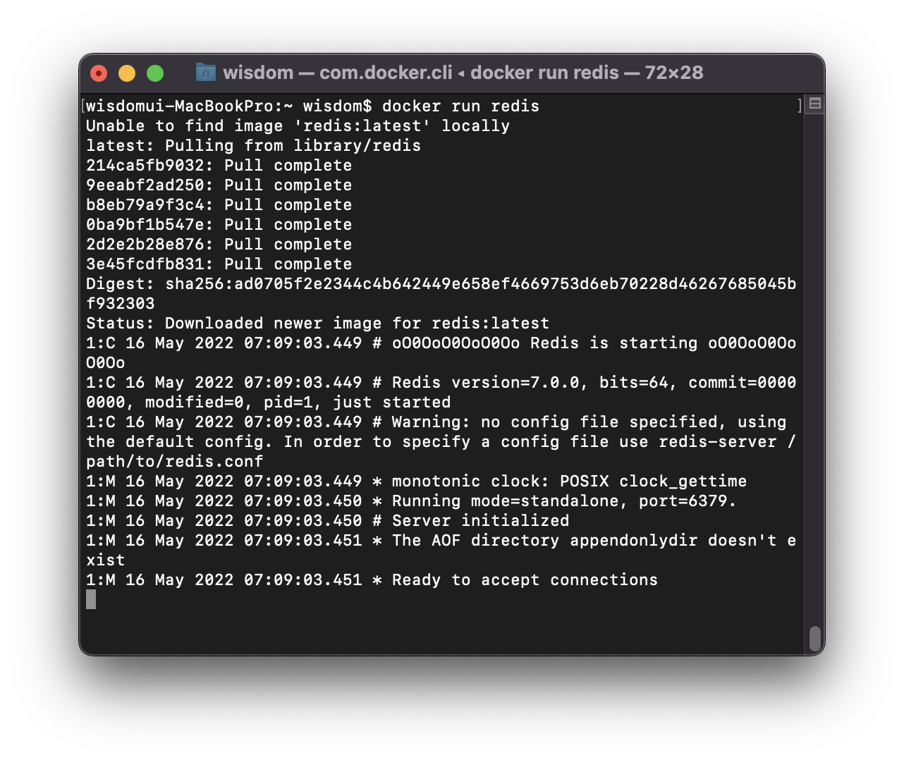 $ docker run redis