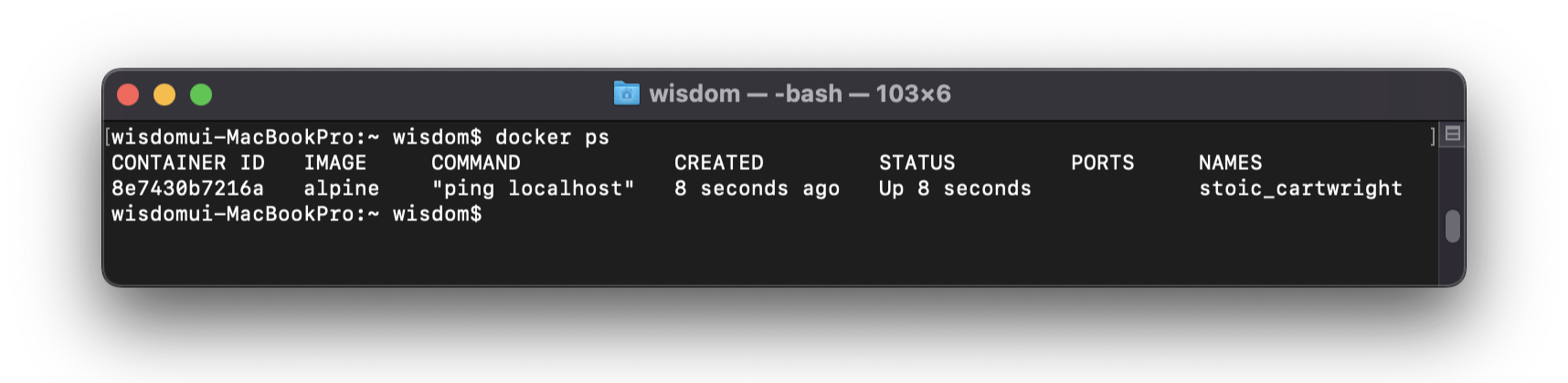 $ docker rename original-name changed-name실행 중인 컨테이너가 없는 경우, 다음과 같이 항목 이름만 출력된다.