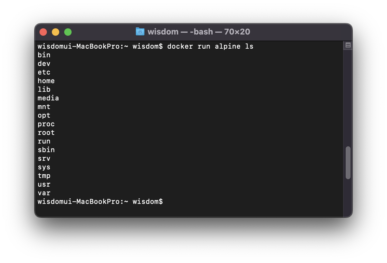 ex) $ docker run alpine ls
