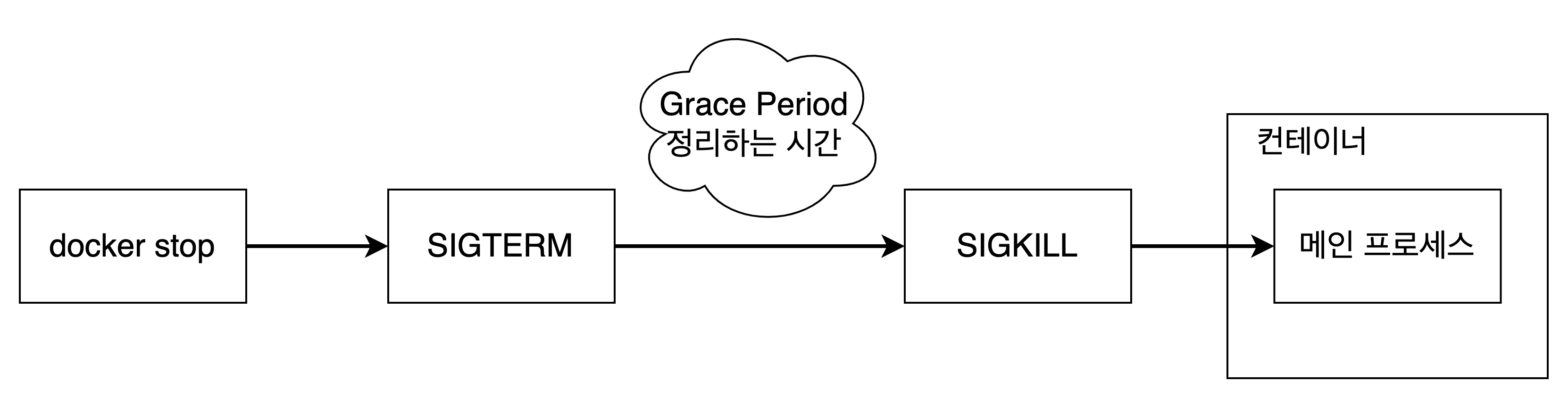 SIGTERM을 보내서 리소스 해제, 상태 저장 등 시스템 종료를 위해 프로세스가 정리하는 시간(Grace Period)를 주고,
