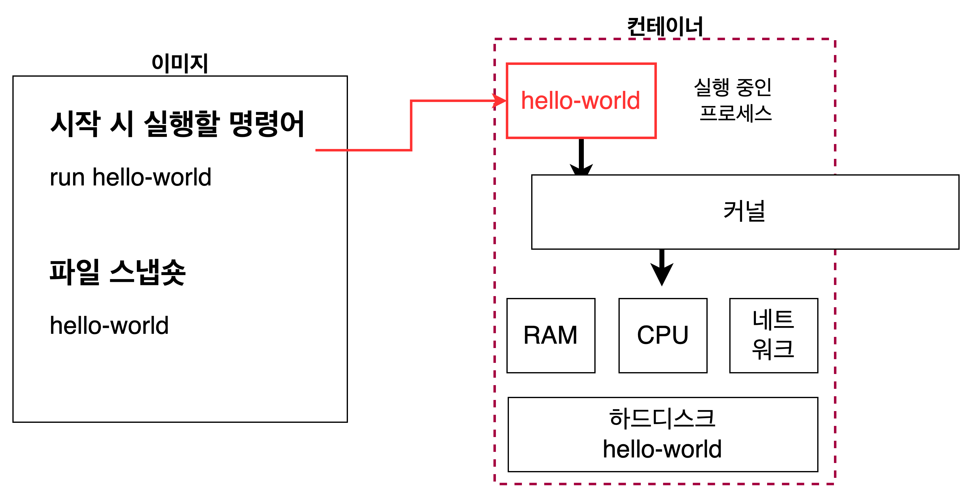다만, 해당 이미지에 이 커맨드를 실행할 실행 파일이 존재해야만 정상적으로 동작할 수 있다.