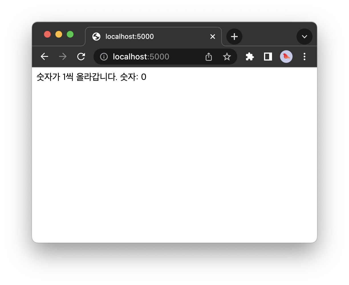 ์ ๋ช ๋ น์ด๋ฅผ ์ฌ์ฉํ๋ฉด, redis ์๋ฒ์ node ์ฑ์ด ๋ชจ๋ ์คํ๋๋ค.์คํ ํ localhost:5000 ์ผ๋ก ์ ์ํ๋ฉด ๋ค์๊ณผ ๊ฐ์ ํ๋ฉด์ด ๋์จ๋ค.