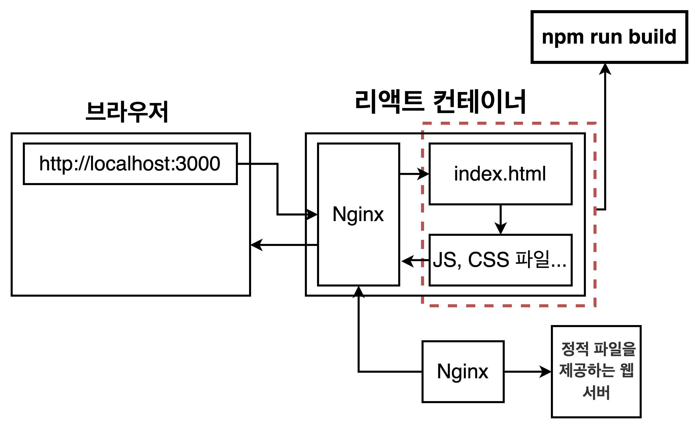 이제 도커를 사용해서 운영환경에서 리액트를 실행해보자.다음은 운영환경에서 앱을 실행하는 과정이다.