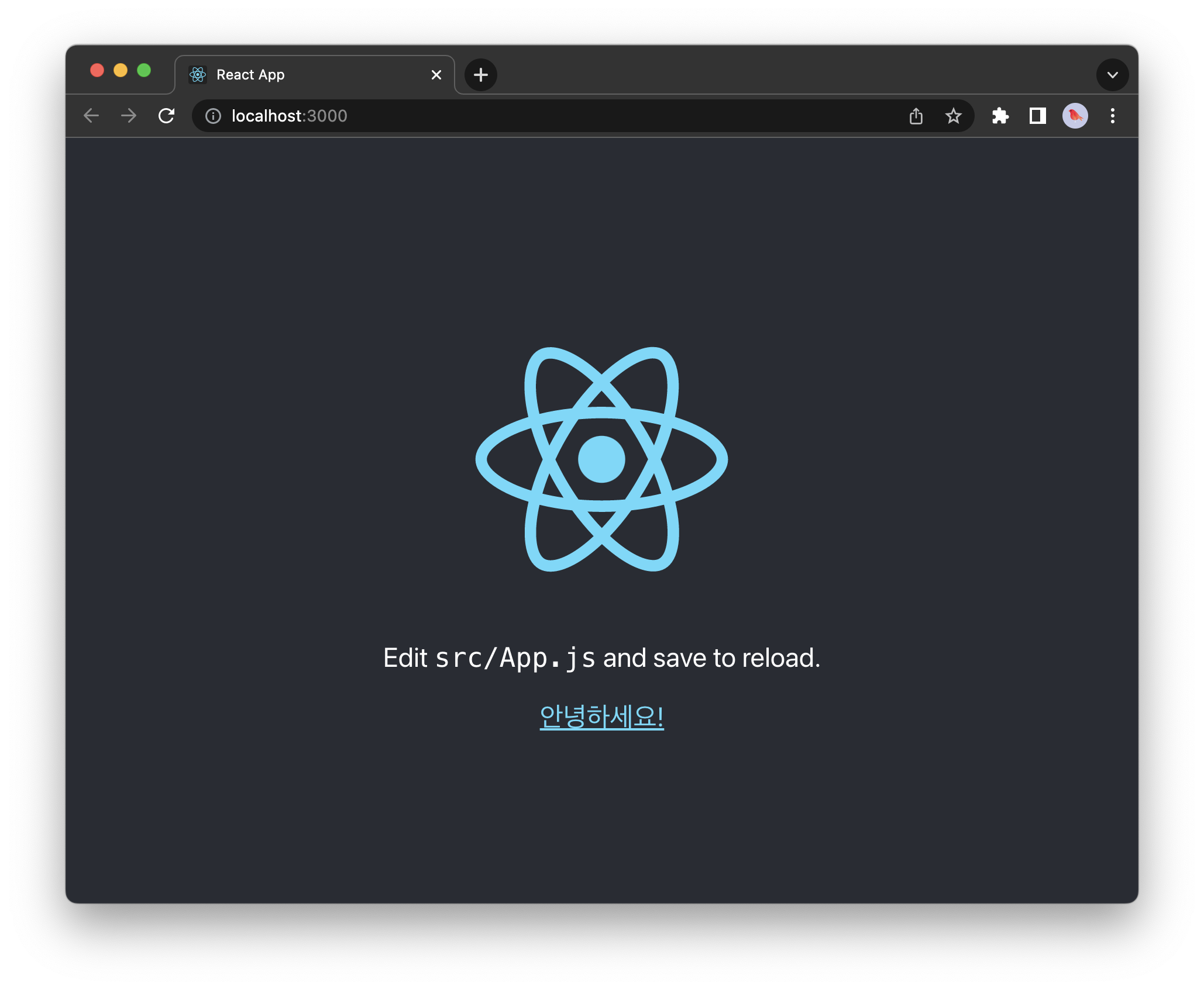 이렇게 실행해주면, create-react-app 을 통해 생성된 기본적인 리액트 앱이 잘 실행되는 것을 확인할 수 있다.
