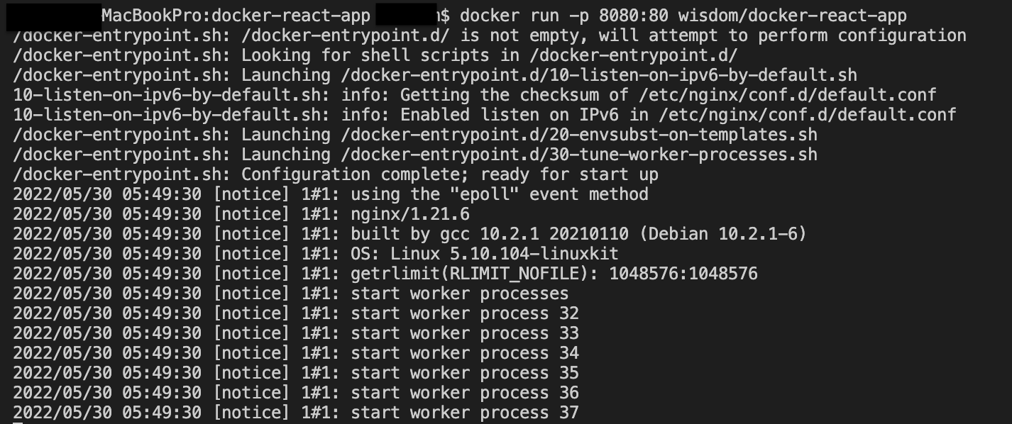 이제 도커를 통해 리액트 앱을 실행해보자.