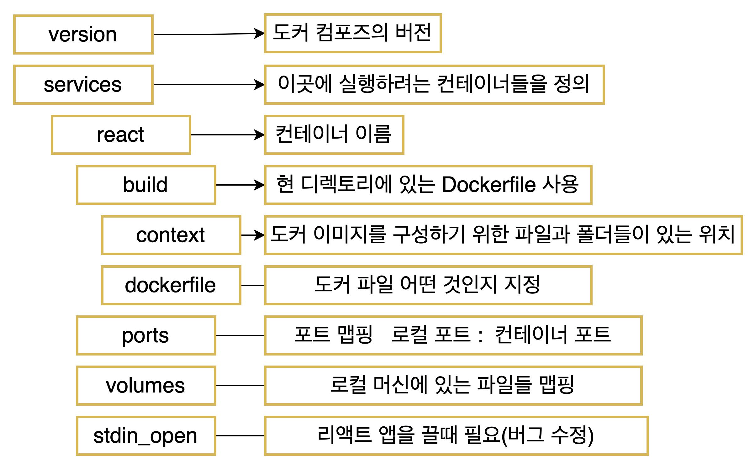 이렇게 미리 옵션들을 정의하면 실행 시 간단한 명령어를 통해 컨테이너를 실행할 수 있다.docker-compose.yml 파일을 다음과 같이 작성하자.
