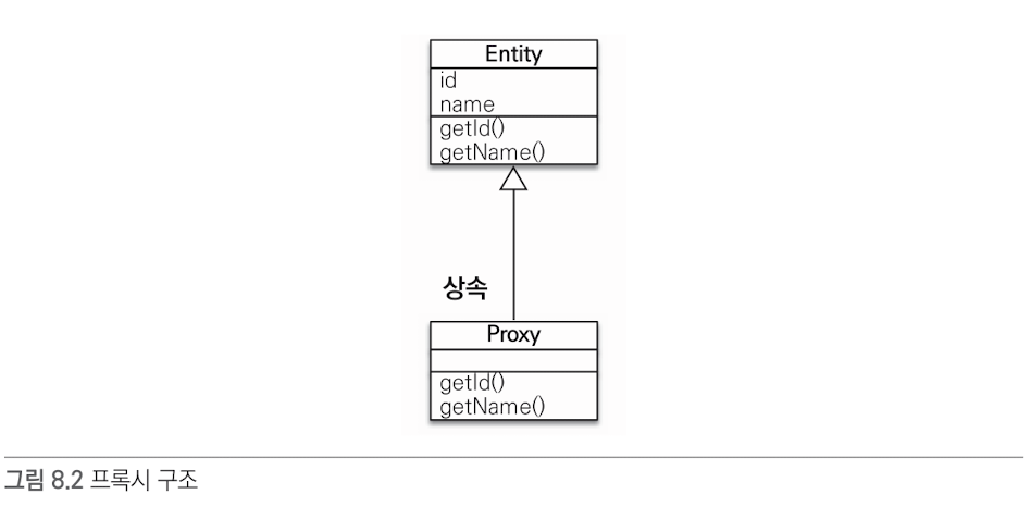 - 프록시 객체는 실제 엔티티 객체의 getName() 을 호출해서 결과를 반환한다.