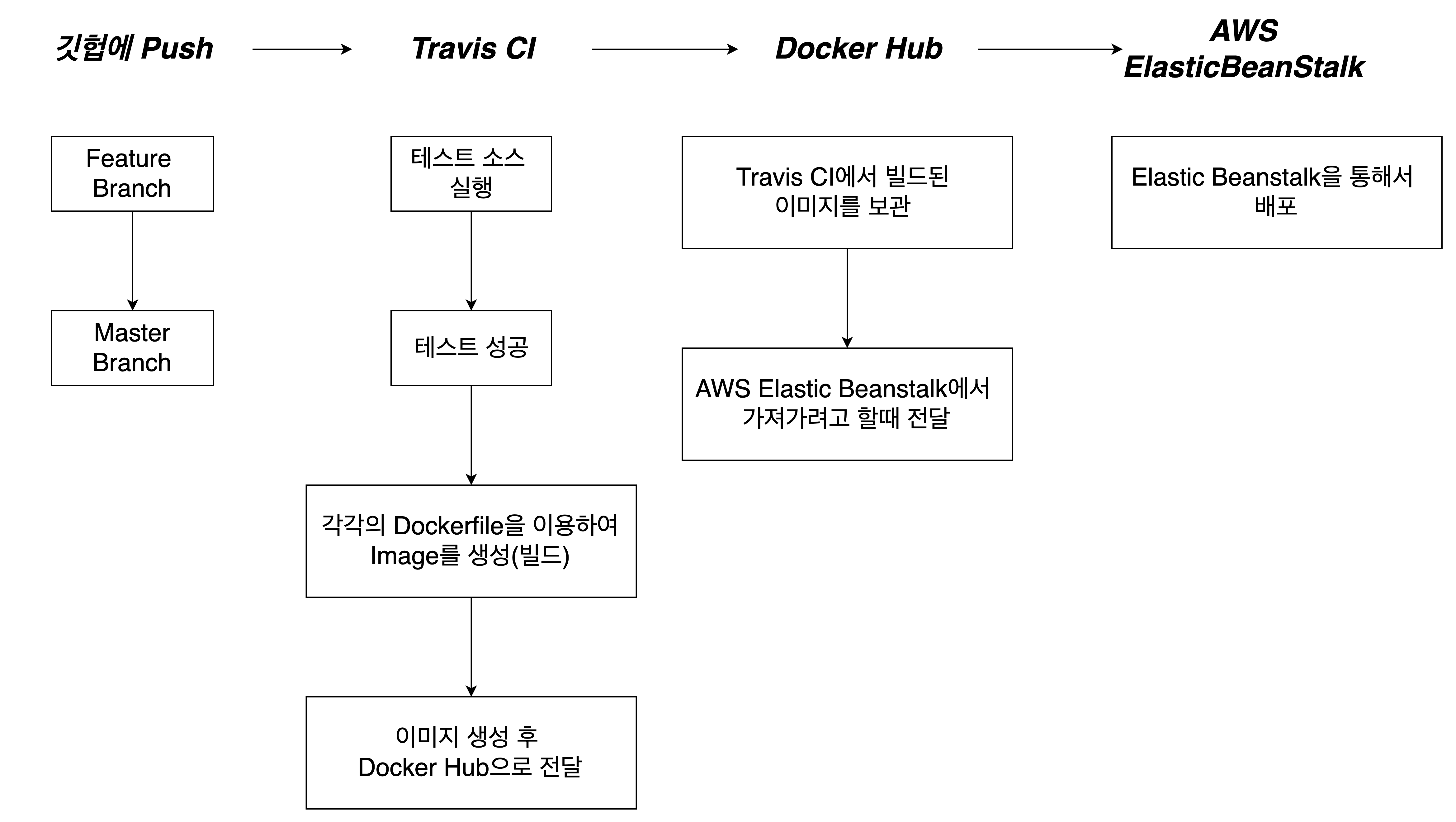 Travis CI에서 바로 AWS Elastic Beanstalk으로 전달하지 않고, Docker Hub에 빌드된 이미지를 보관함으로써 이미지를 한 번만 빌드하도록 한다.