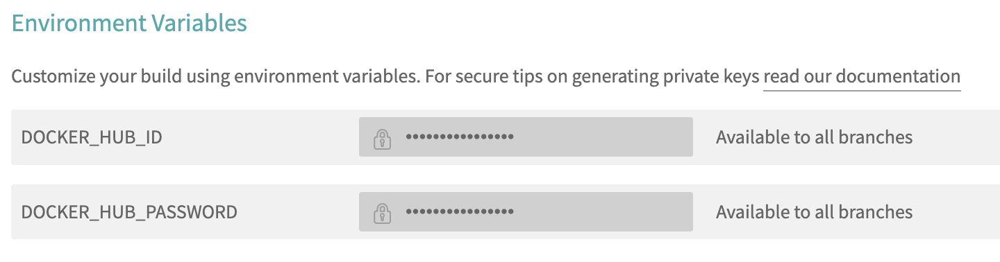 DOCKER_HUB_ID,DOCKER_HUB_PASSWORD라는 이름으로 저장한다.